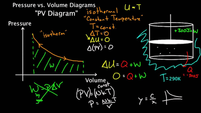 In these videos and articles you'll learn how the first law of thermodynamics relates the change in internal energy of a gas, heat that enters the gas, and work done on the gas. PV diagrams will be discussed, as well as the four common thermal processes: isobaric, isochoric/isovolumetric, isothermal, and adiabatic. You'll also learn about how the second law of thermodynamics relates the entropy ch