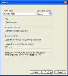 - Change the Profile name to whatever you want (e.g., AT&T MEdia), set any other options as desired, and click Finish.