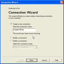- When the Wireless Manager is run for the first time, the Connection Wizard will start automatically. Enter the following settings:
