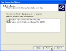 - Create a handset modem entry. If your handset connection (serial cable, USB cable, IrDA, Bluetooth) created a modem entry for your handset (e.g., Standard Modem over Bluetooth link), then you can skip to next major step (Create DUN connection); otherwise: