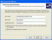 - WAP@CINGULARGPRS.COM (must be all uppercase)